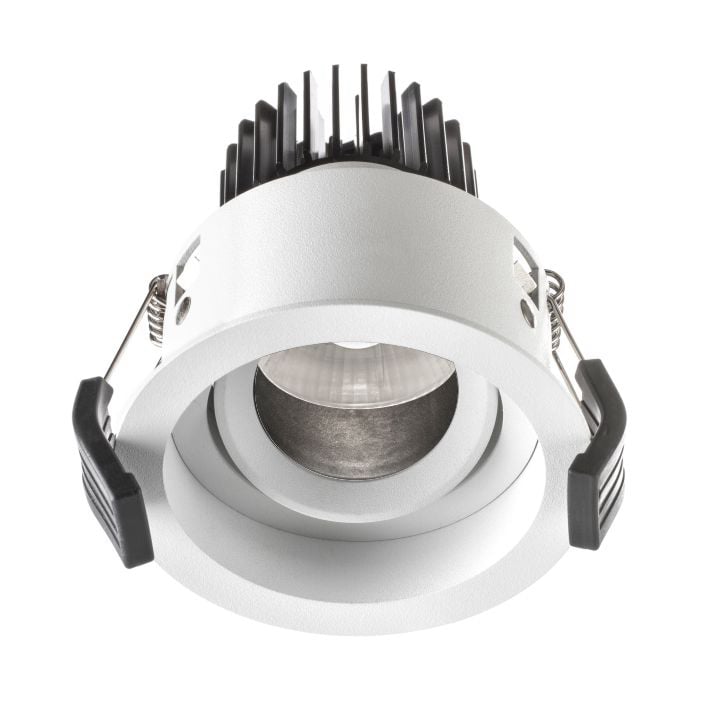 Empotrable de techo de frente redondo. Disponible en diversos tamaños y diferentes ángulos de apertura, permite abarcar las diferentes necesidades del proyecto, conservando una estética uniforme.